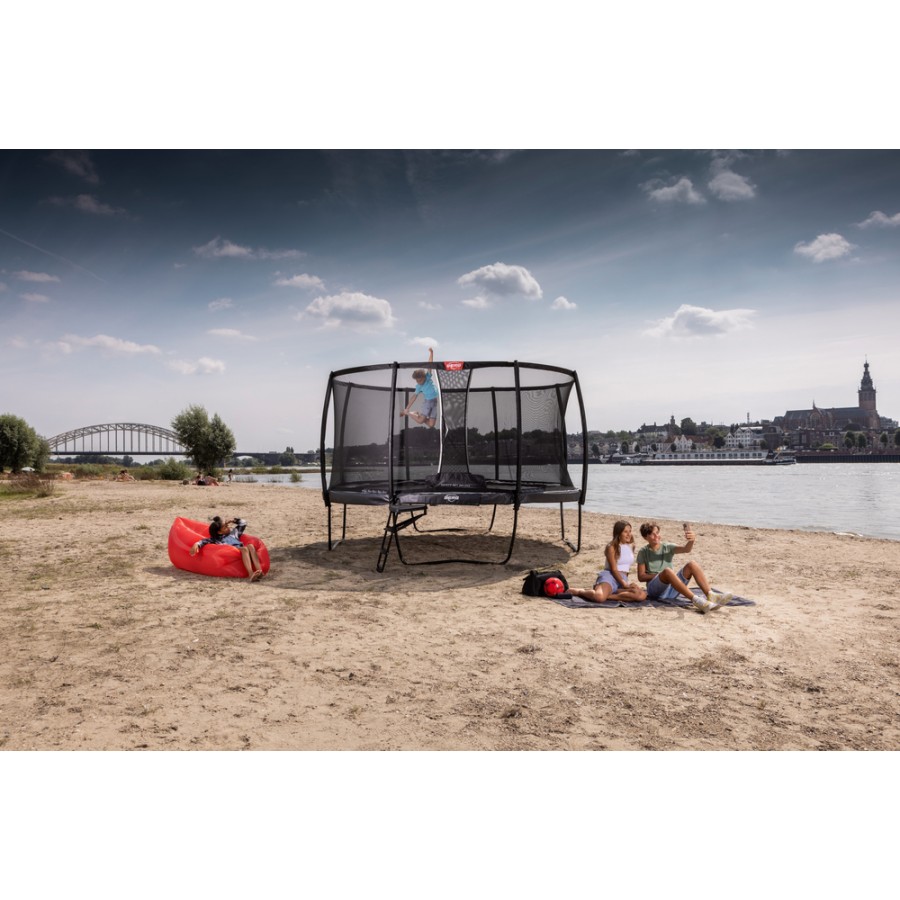 Das BERG Elite ist das Spitzenmodell unter den Trampolinen von BERG. Der solide Schutzrand besteht aus hochwertigstem Material, wodurch sich das BERG Elite auch für den intensiven Gebrauch eignet. Darüber hinaus ist der Elite-Schutzrand auch extrem UV-beständig. Die TwinSpring-Gold-Federn und das spezielle AirFlow-Sprungtuch bieten ultimativen Springkomfort. Das AirFlow-Sprungtuch lässt 50 % mehr Luft durch und sorgt für geringeren Widerstand, sodass höhere Sprünge möglich sind. Optimaler Springkomfort also!