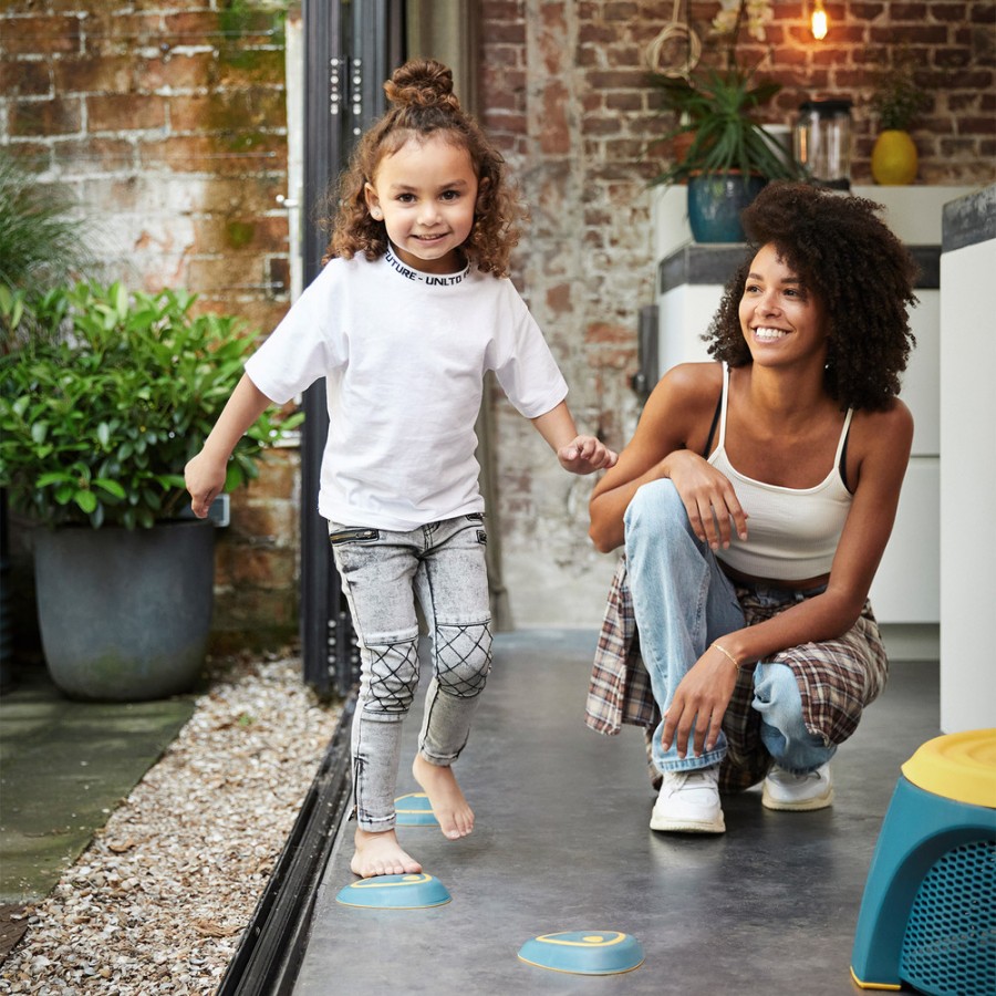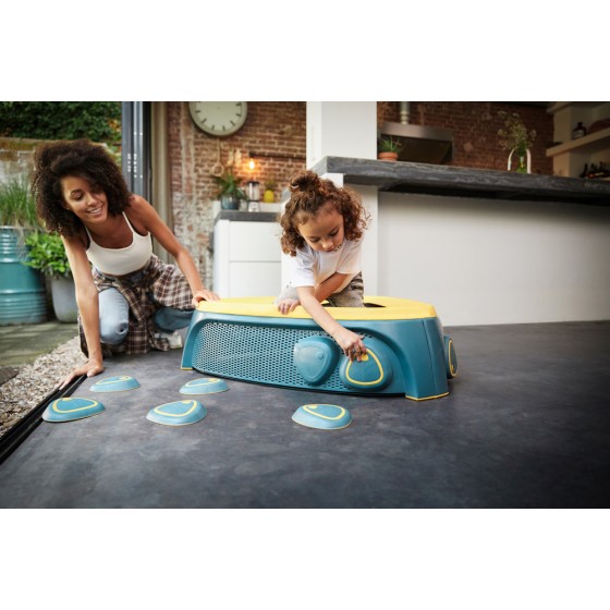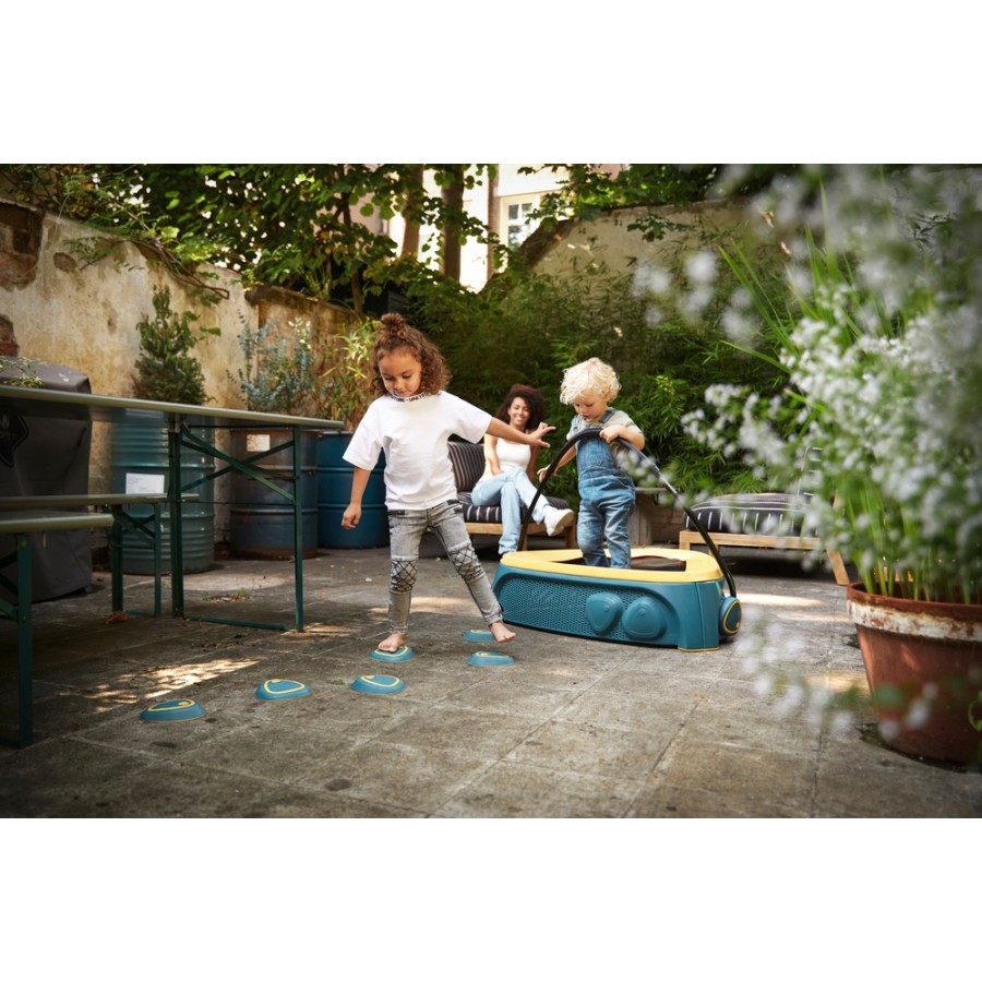Dank der rutschfesten Trittsteine kannst Du auch Dein Gleichgewicht trainieren. Das macht allein oder mit Freunden Spaß. Die rutschfesten Trittsteine können einfach an der Seite des Hoppaa aufbewahrt werden.