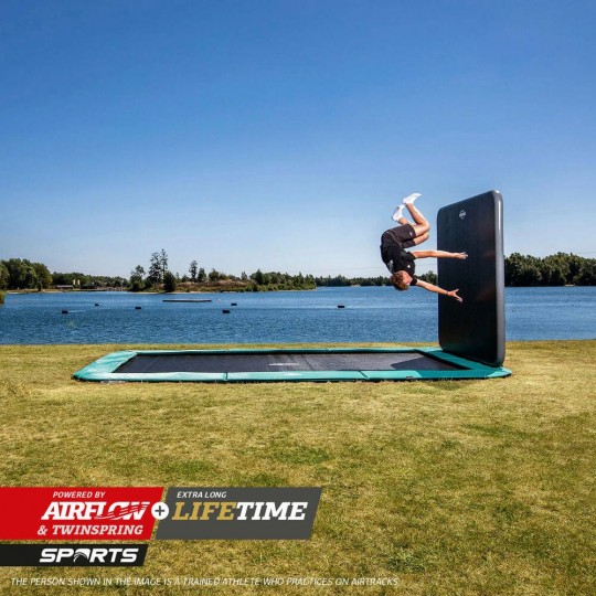 Das optionale Sicherheitsnetz (220 cm hoch!) passt sowohl auf die Regular- als auch die FlatGround-Ausführung dieses Trampolins. Damit ist dies neben dem Ultim Elite FlatGround das einzige FlatGround-Trampolin, das mit einem Sicherheitsnetz kombiniert werden kann.