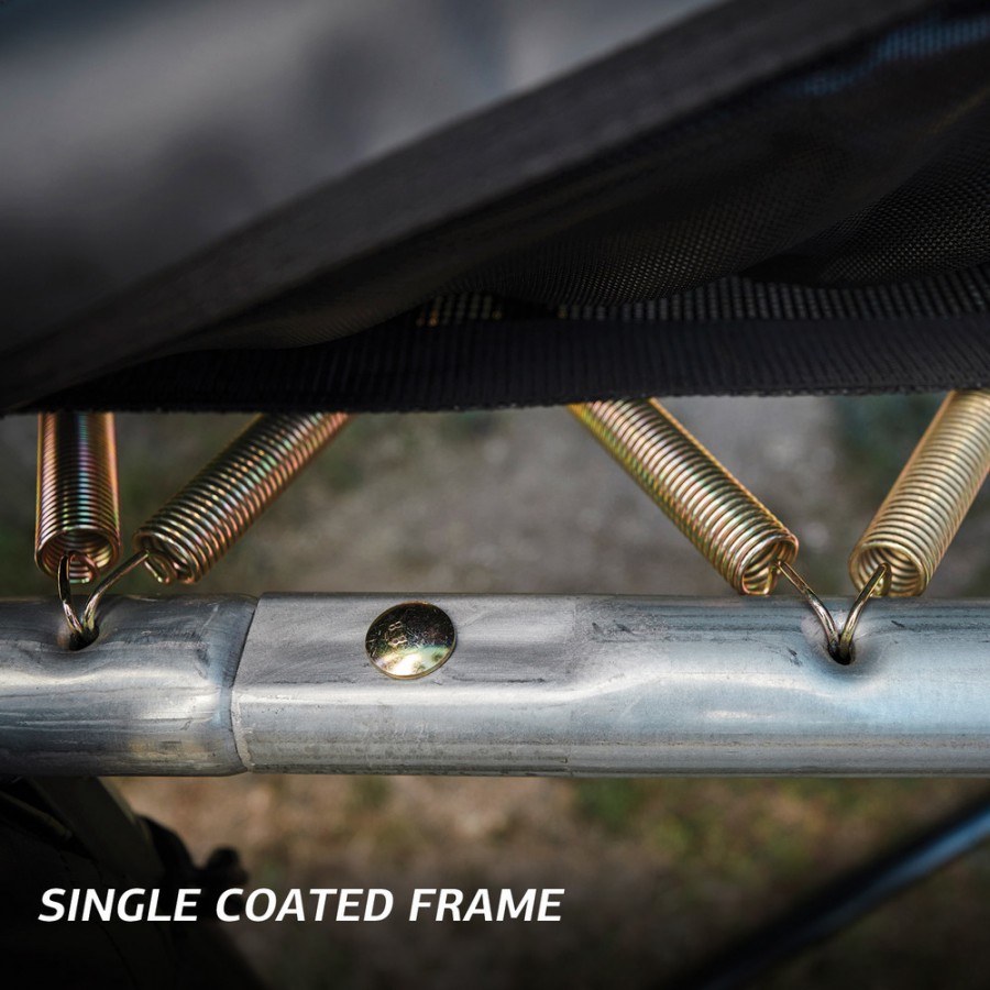 Das Ultim Champion ist natürlich mit AirFlow-Sprungtuch und TwinSpring-Federn ausgestattet. Das AirFlow-Sprungtuch lässt 50 % mehr Luft durch, wodurch du höher springen kannst und weniger schnell ermüdest. Dank der schrägen Anordnung der Twinspring-Federn können mehr und längere Federn verwendet werden. Dies gewährleistet ein größeres Springvergnügen und einen größeren perfekten Sprungbereich.