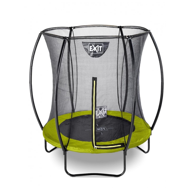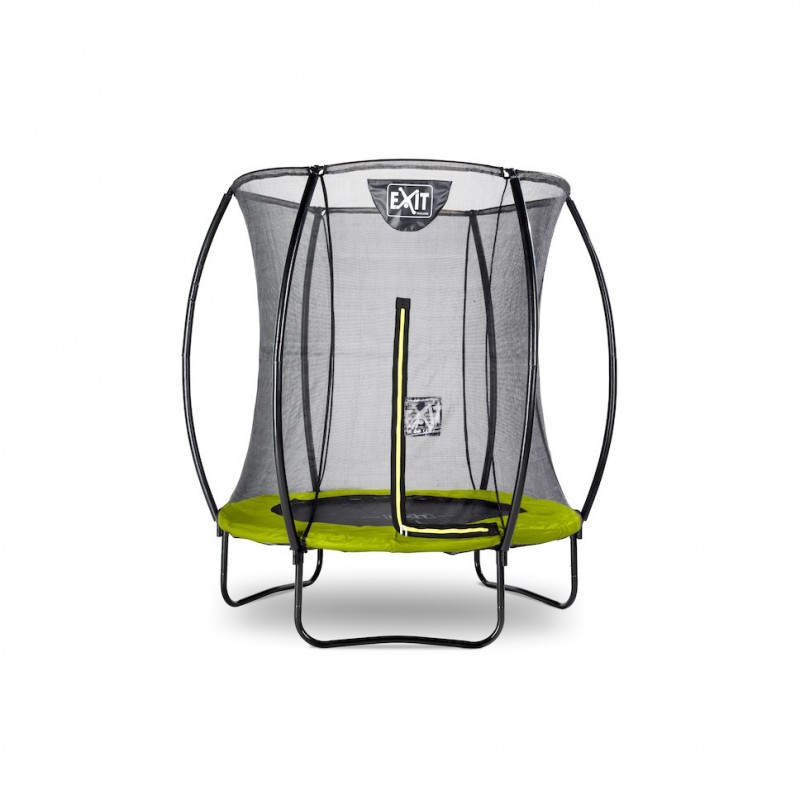 Das EXIT Silhouette Trampolin auf Füßen ist ein großes rundes Trampolin mit einem Schutzrand. Das Sicherheitsnetz, dass standardmäßig mit den Trampolinen auf Füßen mitgeliefert wird, ist mit gebogenen Pfosten ausgestattet damit das Netz straff gespannt steht. Das ist nicht allein extra sicher, weil Kinder nicht im Netz hängen bleiben können, sondern sieht es auch ruhiger im Garten aus. Das Sicherheitsnetz ist mit einem gut auffallenden, fluoreszierenden grünen Reißverschluss ausgestattet, sodass du direkt sehen kannst ob der Reißverschluss gut verschlossen ist.