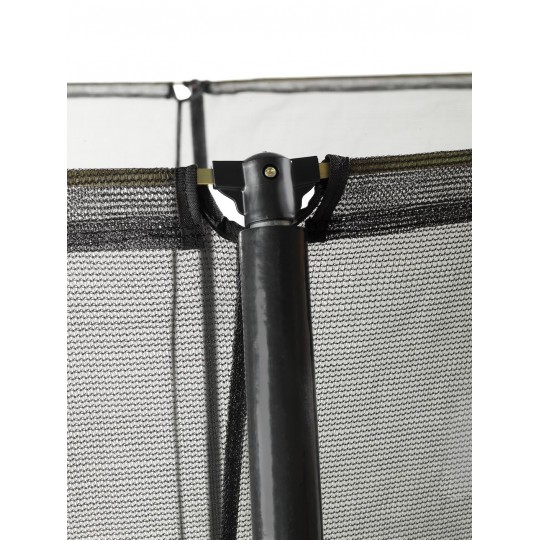 Das EXIT Silhouette Trampolin auf Füßen ist ein großes rundes Trampolin mit einem Schutzrand. Das Sicherheitsnetz, dass standardmäßig mit den Trampolinen auf Füßen mitgeliefert wird, ist mit gebogenen Pfosten ausgestattet damit das Netz straff gespannt steht. Das ist nicht allein extra sicher, weil Kinder nicht im Netz hängen bleiben können, sondern sieht es auch ruhiger im Garten aus. Das Sicherheitsnetz ist mit einem gut auffallenden, fluoreszierenden grünen Reißverschluss ausgestattet, sodass du direkt sehen kannst ob der Reißverschluss gut verschlossen ist.