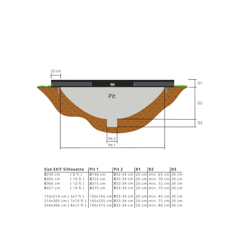 Das EXIT Silhouette Bodentrampolin ist ein kompaktes rundes Trampolin mit einem Schutzrand. Du gräbst im Handumdrehen eine Grube in den Boden, in welche das Trampolin für ein schönes und sicheres Resultat gestellt wird. So musst du dir als Eltern keine Sorgen machen, dass die Kinder bei einem Felhsprung von einem hohen Trampolin herunterfallen können