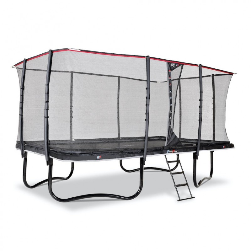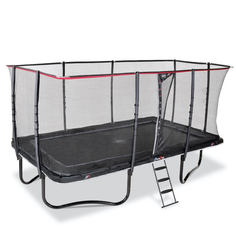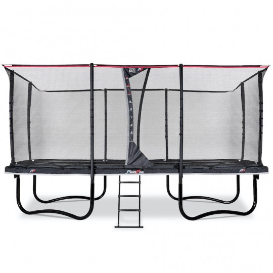 Das EXIT PeakPro Trampolin mit Sicherheitsnetz ist ein rechteckiges Trampolin mit einem Schutzrand und erstklassigen Sprungkomfort. Der schwarze Rahmen, die dezenten Farbdetails sowie reflektierende Paspeln verleihen dem großen Trampolin eine robuste Ausstrahlung: ein Prunkstück in jedem Garten. Dieses Trampolin wird inklusive Leiter geliefert, so dass du sicher und schnell auf das Trampolin steigen kannst. Mit dem PeakPro Trampolin im Garten springen die Kinder gern, um ihr Können zu zeigen.