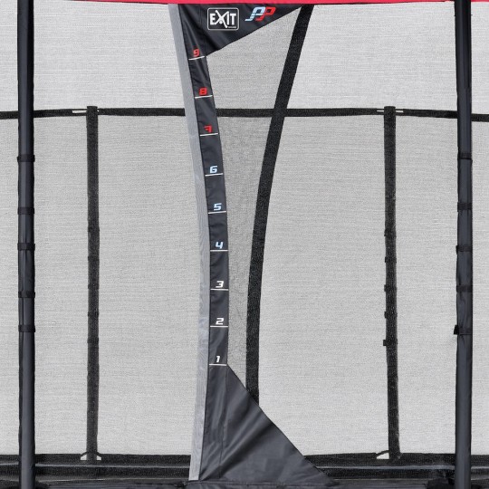 Die PeakPro Trampoline sind für Kinder mit viel Springerfahrung geeignet. Die flexiblen Springfedern des EXIT PeakPro Trampolins sind nicht weniger als 25 Zentimeter lang und ermöglichen ein einfaches Springen in große Höhen. Trainiere akrobatische Tricks auf der großen Sprungfläche und werde ein echter Profi. Das serienmäßige Sicherheitsnetz ist mit einem Sprungmesser ausgestattet, so dass jeder sehen kann, wie hoch du springen kannst. Fordere Deine Freunde heraus und schaue, wer zuerst über die neun auf dem Sprungmesser hinauskommt.