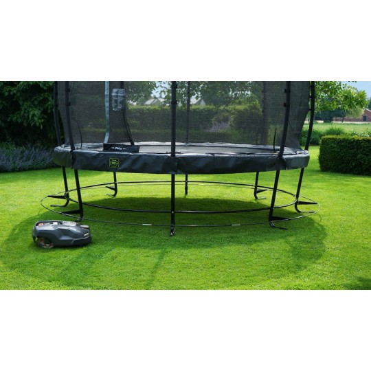 Der EXIT Mähroboter-Stopper für Elegant und Elegant Premium Trampoline ist ein System, das am Trampolin befestigt wird, damit der Mähroboter den Rasen rund um das Trampolin gut mähen kann. Der Stopper besteht aus metallenen Verbindungselementen und einem Glasfiberring. So kann der Mähroboter nicht unter das Trampolin gelangen.